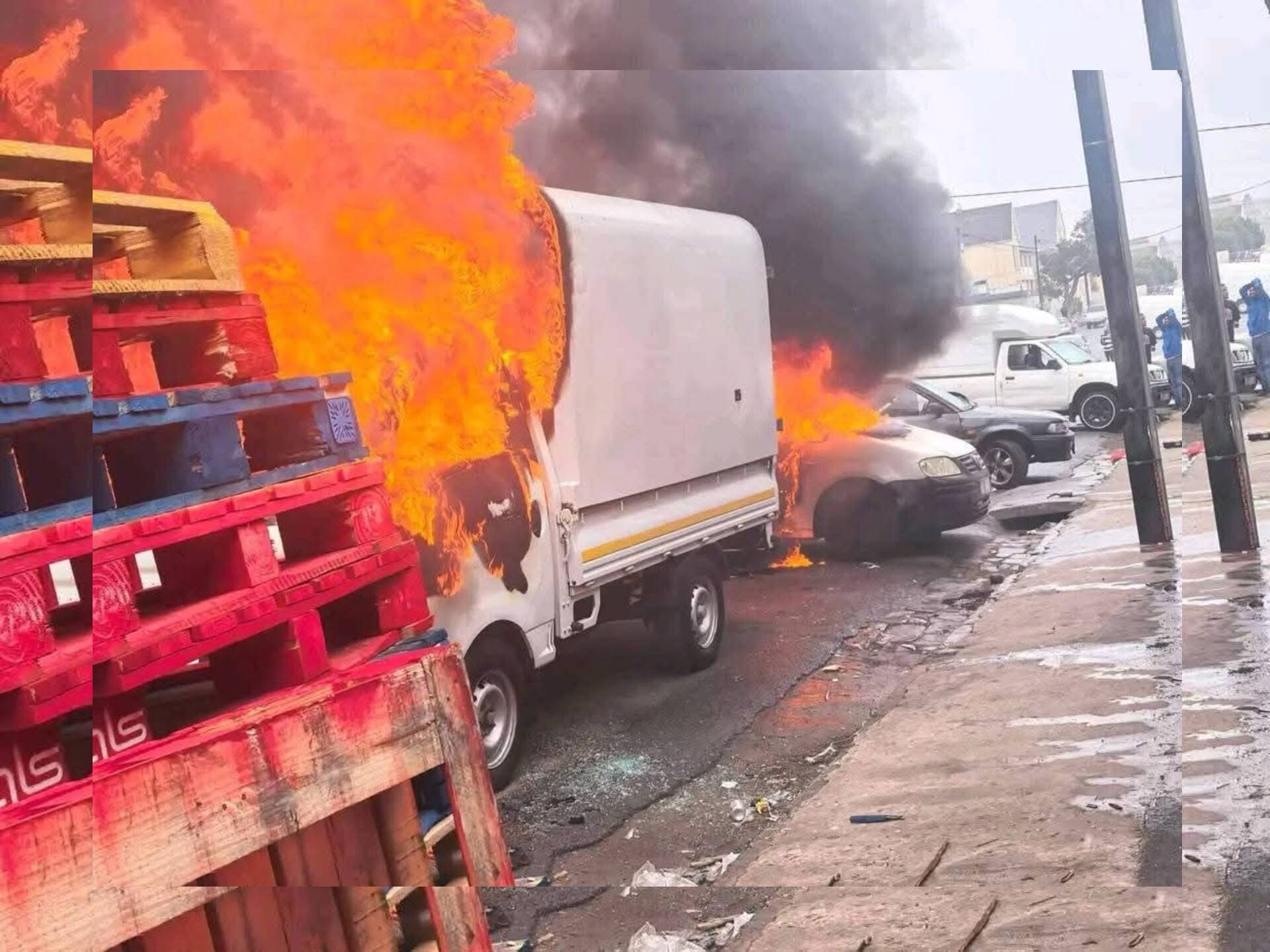 The protest began peacefully but brought traffic to a standstill in parts of KuGompo City. It later turned volatile, with reports of clashes between demonstrators and authorities. Protesters set vehicles alight, including panel vans, bakkies, and trucks. Eastern Cape police confirmed that 12 cars were damaged during the unrest. Other accounts indicated that at least 13 vehicles were set on fire, while some reports mentioned up to 15 vehicles burnt and a higher number damaged.