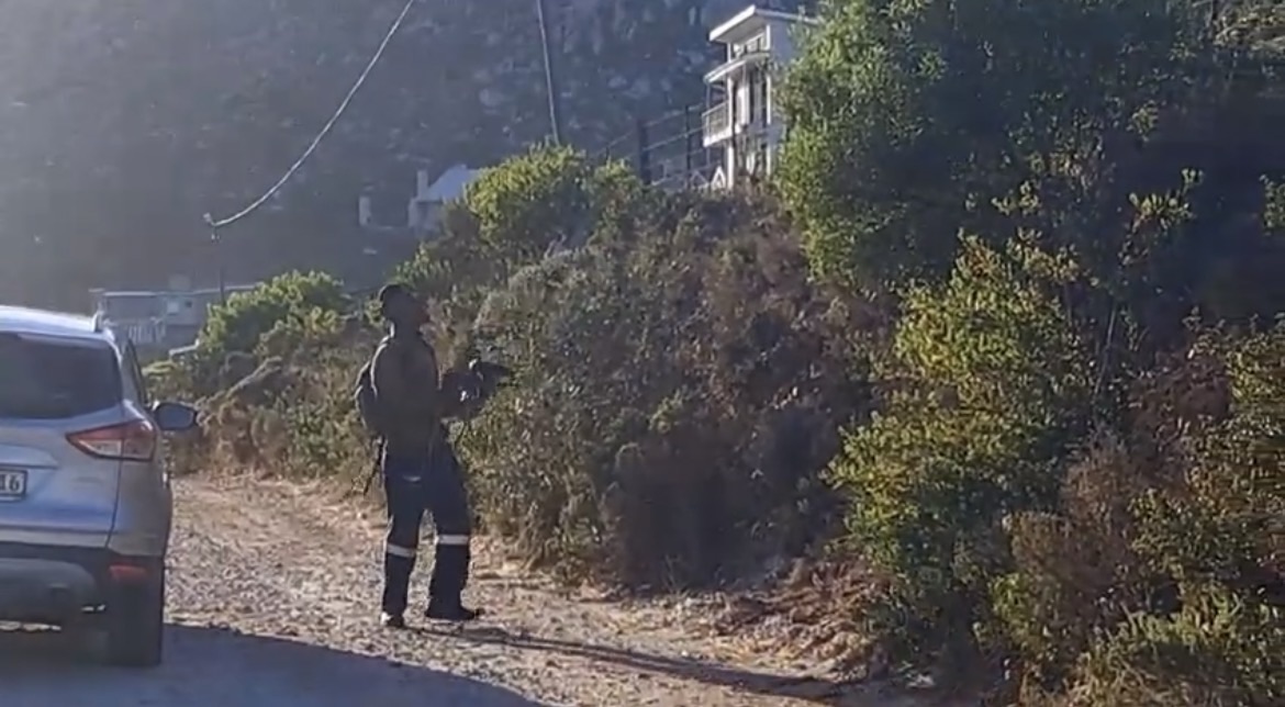 Pringle Bay, South Africa – Overstrand Municipality baboon monitors, operating under the municipality’s Adaptive Baboon Management Plan, have been documented discharging non-lethal projectiles at chacma baboons in Pringle Bay while the troop attempts to forage in and around the urban area.