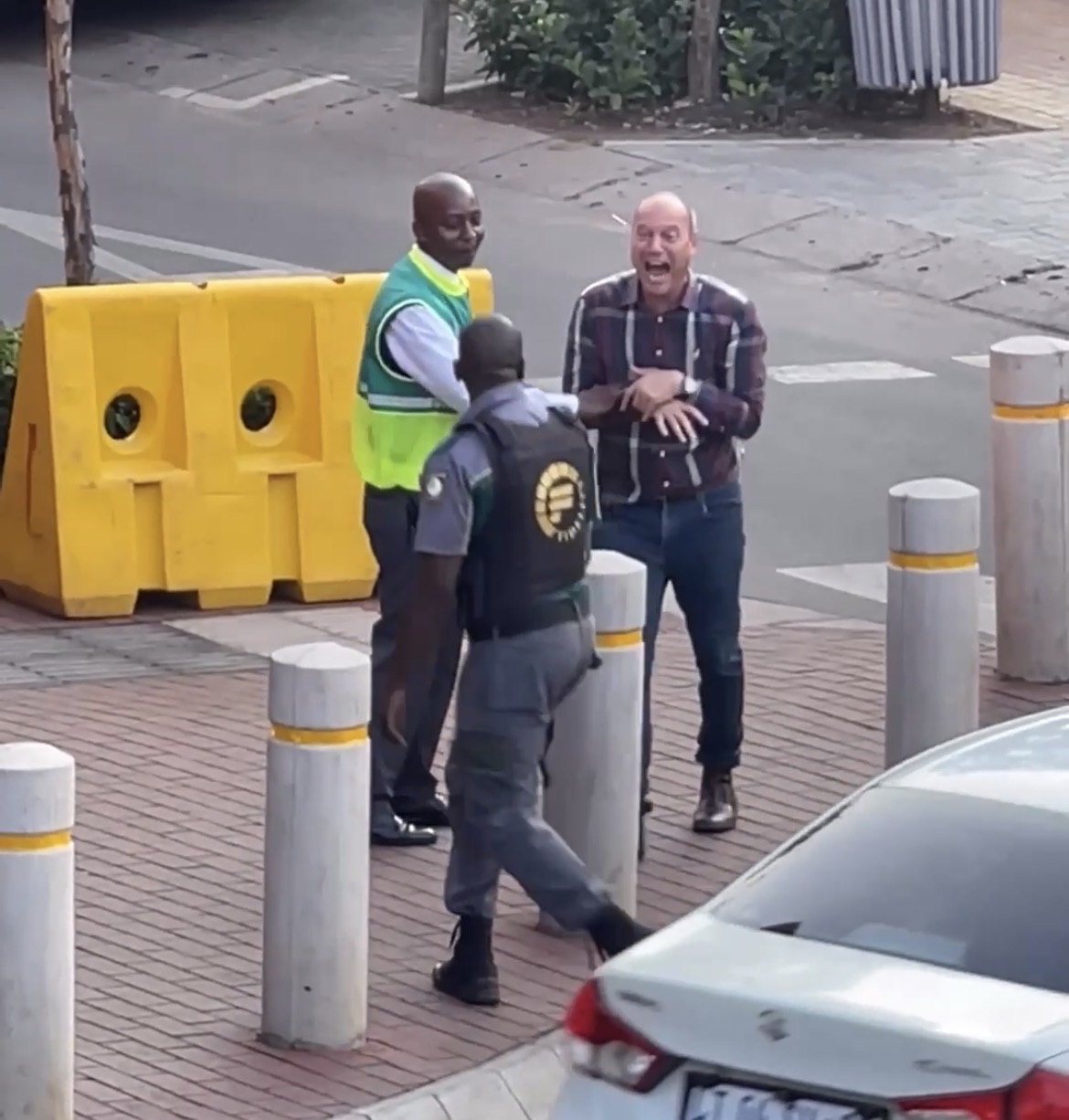 In a swift development following the robbery, one suspect was apprehended by officers from the Ekurhuleni Metropolitan Police Department (EMPD) near the Springs offramp. The man, believed to be involved in the heist, was found in possession of cash and firearms. Footage of the arrest depicts the suspect handcuffed and detained in the back of a police van, with officers in yellow vests inspecting a silver vehicle that had veered off the road into a grassy embankment. Additional vehicles, including white bakkies, were present at the arrest site, indicating a coordinated police response.