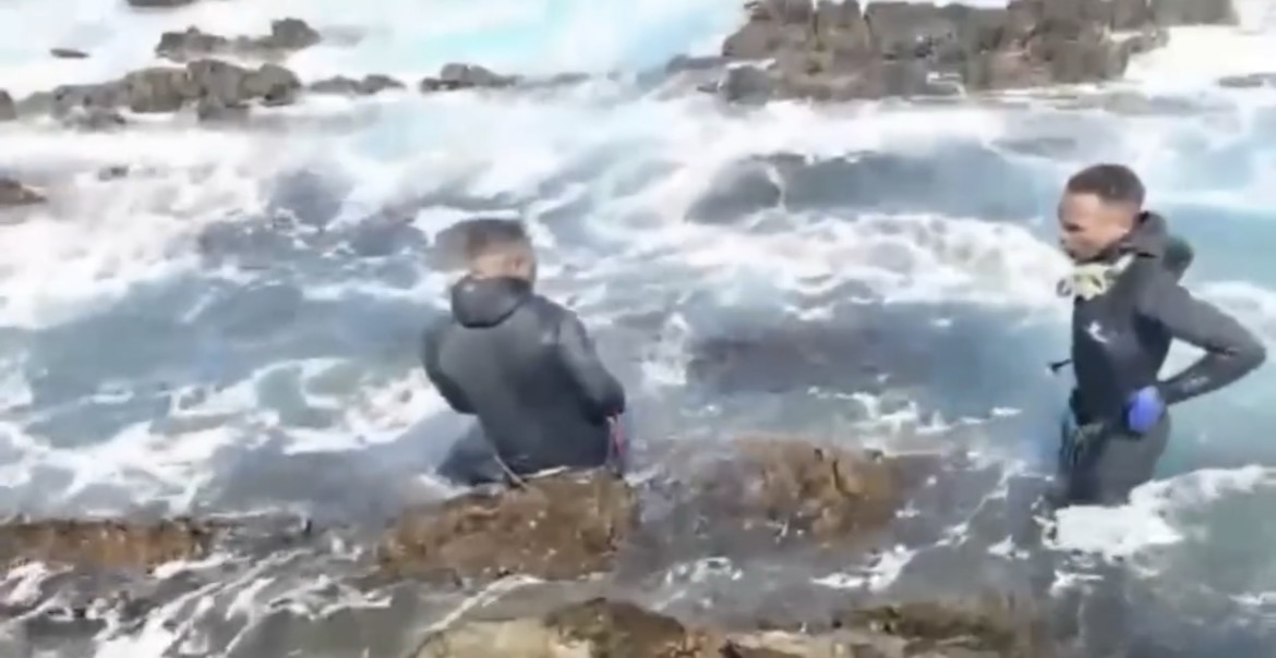 Dramatic scenes unfolded at Schoenmakerskop when a member of the public caught three suspected poachers in the act. The confrontation occurred as the individuals, dressed in diving suits, were allegedly preparing for or engaged in illegal poaching activities along the coast.