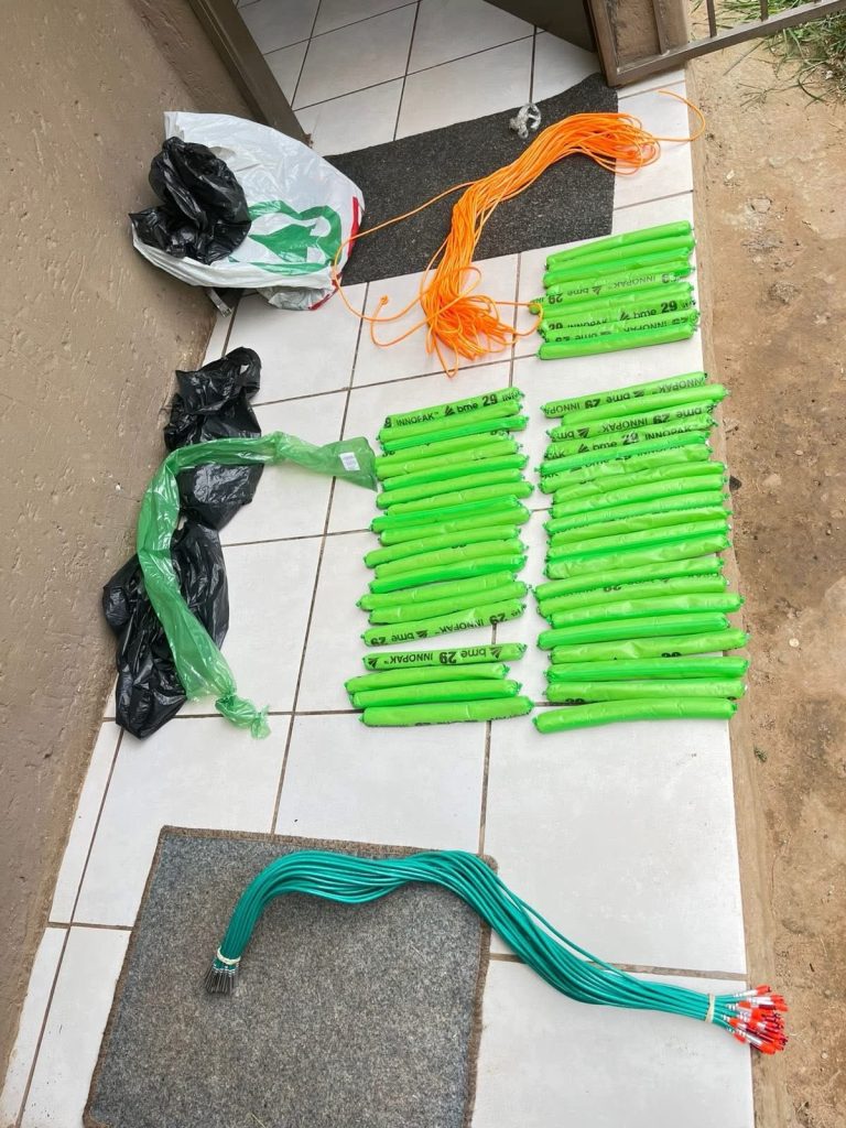 The arrest was carried out by the National Intervention Unit and Gauteng Crime Intelligence officers, who acted on intelligence regarding the sale of explosives in the Motlhakeng area and surrounding regions.