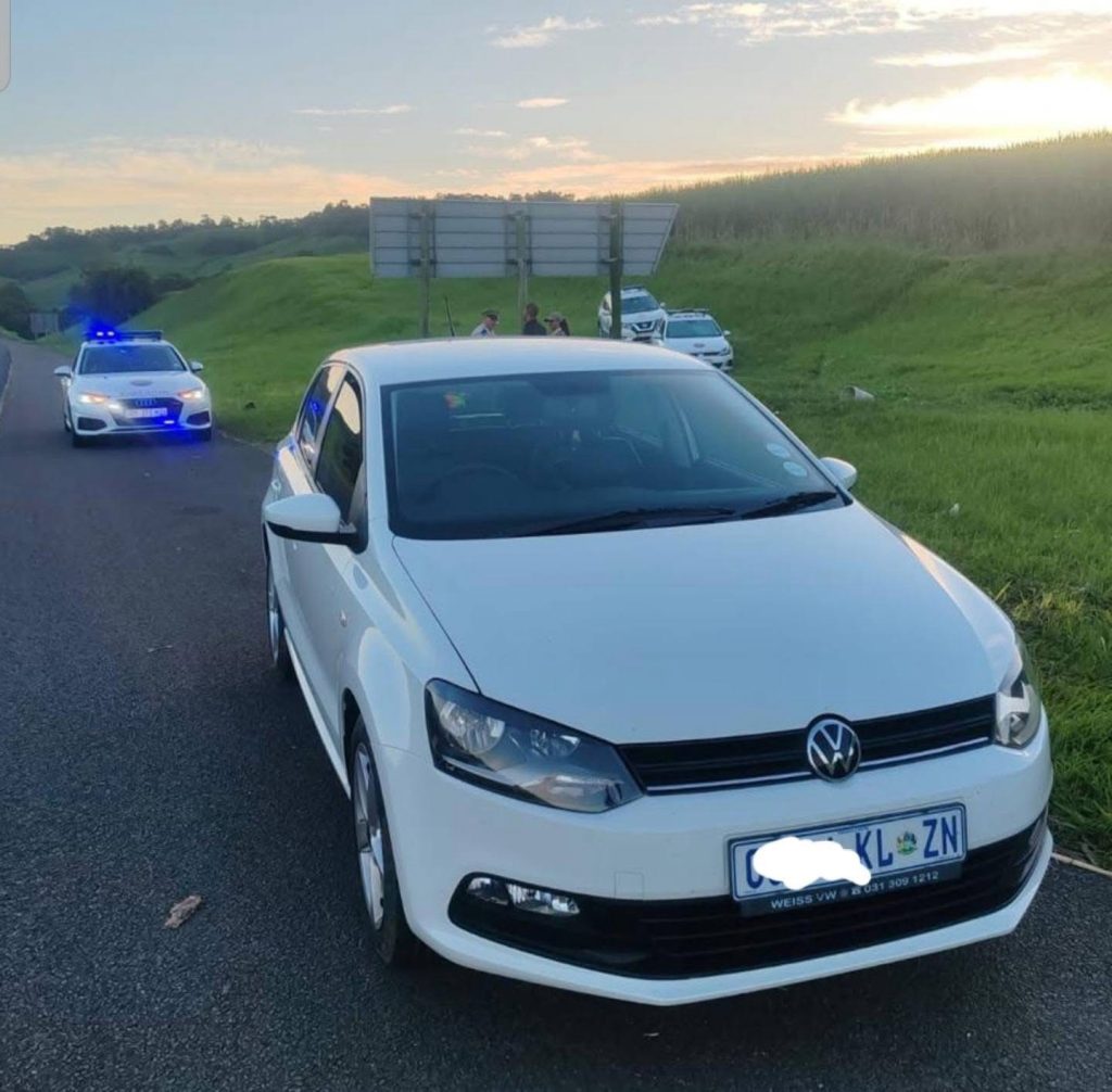 A white VW Polo, believed to be linked to multiple robberies, was intercepted right outside the store at the corner of Hilda and Park streets.